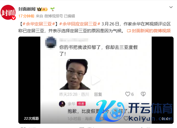 3月26日,作者余华在其视频评述区称已假寓三亚,并示意选拔假寓三亚的原因是因为时局。