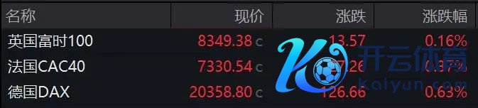 欧洲三大股指收盘小幅飞腾,德国DAX指数涨0.63%报20358.80点,续创收盘历史新高。法国CAC40指数涨0.37%报7330.54点,英国富时100指数涨0.16%报8349.38点。
