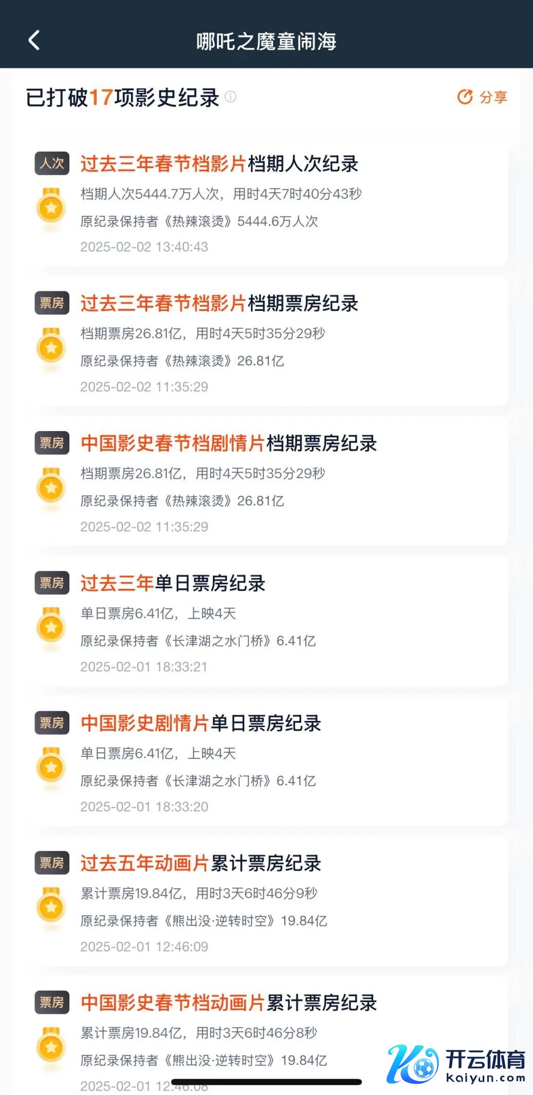 现在,《哪吒2》也曾冲破17项影史记录,包括当年三年春节档影片档期票房记录、中国影史动画片首映日票房记录、当年三年单日票房记录等。