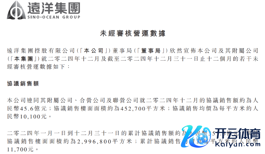 1月15日和2月14日,远洋集团分手发布了2024年全年和2025年1月未经审核的营运数据。