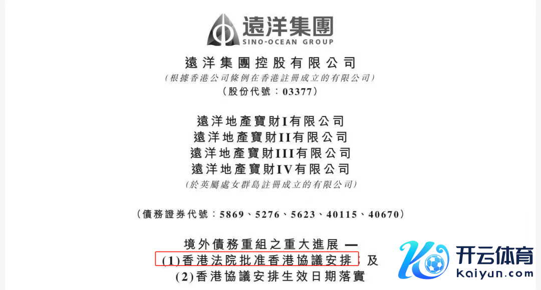 据悉,远洋集团寻求批准香港左券安排的呈请于2月19日进行了聆讯,中国香港法院批准了此份香港左券安排,文献的盖印副本也已于当日向中国香港公司注册处进行了登记。