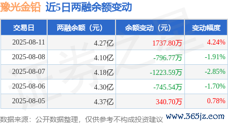 本站音问,8月11日,豫光金铅(600531)融资买入4827.4万元,融资偿还3066.11万元体育游戏app平台,融资净买入1761.29万元,融资余额4.25亿元,近20个交游日中有11个交游日出现融资净买入。