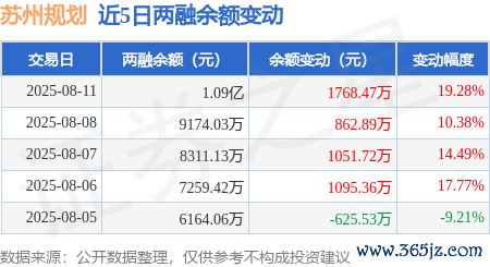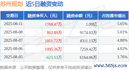 本站音信,8月11日,苏州筹算(301505)融资买入4951.68万元,融资偿还3183.21万元,融资净买入1768.47万元,融资余额1.09亿元,近3个交游日已贯穿净买入累计3683.08万元,近20个交游日中有11个交游日出现融资净买入。