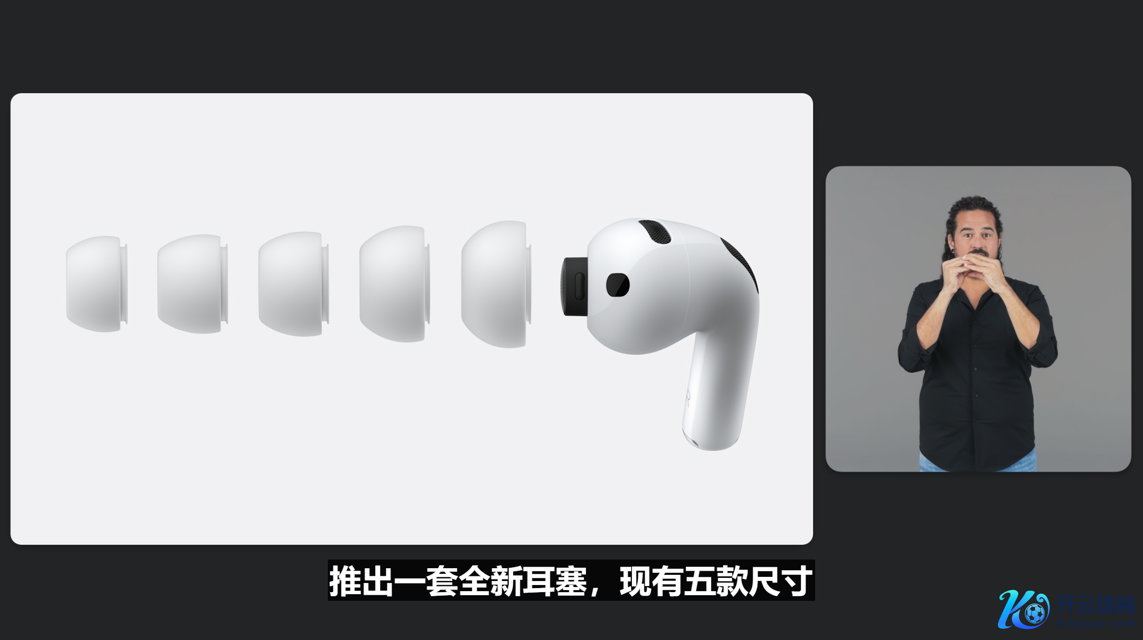 为了愈加贴合用户的使用,苹果分析了一万多个3D耳部扫描扫尾和率先十万小时的用户议论数据,推出一套全新耳塞,有五款尺寸。此外,AirPods Pro 3如故首款抗汗抗水性能达到IP57级别的AirPods。