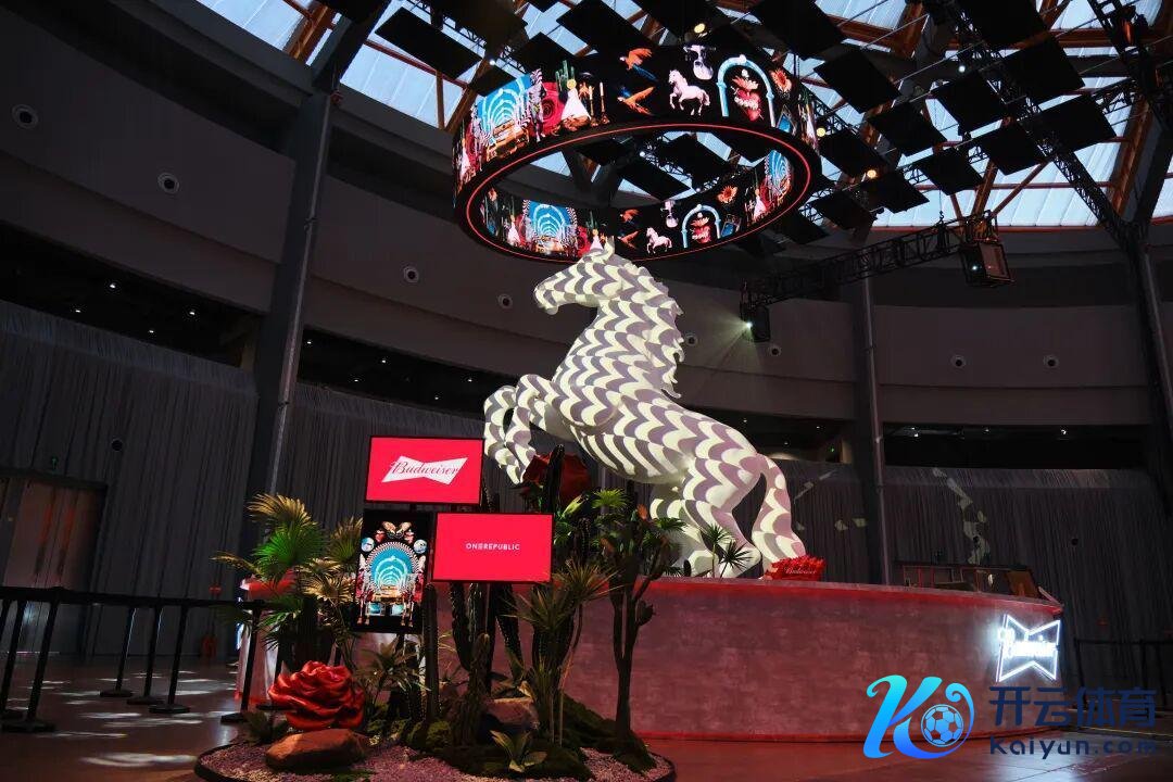 不雅众从步入上演现场的那一刻,就投入到BUD LIVE打造的千里浸式音乐空间,尤为吸睛的是现场尽头建设的一座6米高的白马雕琢,抬头挺立于主题吧台的中央。白马的创意取自OneRepublic第六张专辑《Artificial Paradise》的封面办法。此外,现场还为歌迷提供百威啤酒、为上演定制的彩绘贴纸、T恤、多功能开瓶器等邻近领取互动规律,让粉丝在体验百威品牌文化的同期,愈加深入乐队的音乐宇宙。