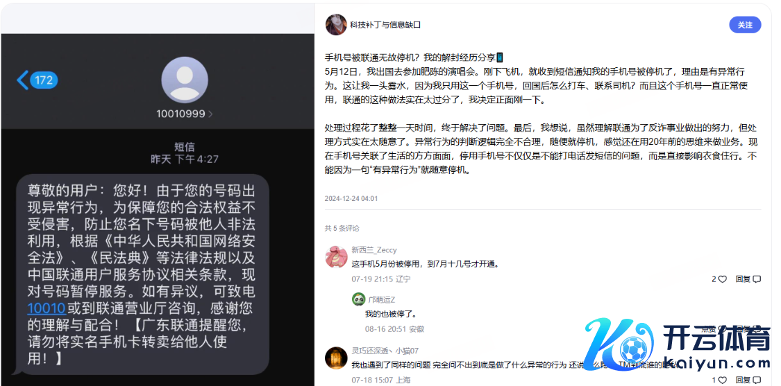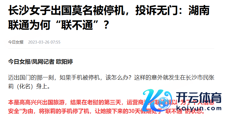 但该网友暗示,我方刚落地台湾,就发现国内某运营商的手机号莫得了信号,什么办事王人用不了。用其他号码联系客服,被奉告为运营商方面操作的“十分停机”,需要在线上提供一系列的复杂贵府,审核通事后才有可能归附时时。