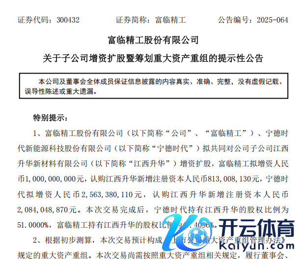 【导读】富临精工与宁德期间拟对江西升华增资扩股,瞻望组成紧要钞票重组