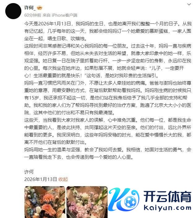 在这篇长文中,许何回忆起母亲生前过寿辰的温馨一幕,母亲的强项会撑抓他连续前行。