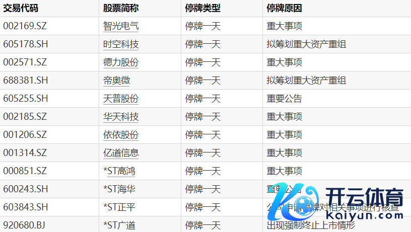 A股停牌提醒:12股当天停牌开云体育A股停牌提醒:12股当天停牌